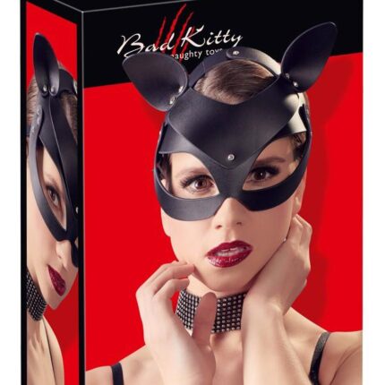 Czarna maska do sado maso BDSM z czerwona wstążką