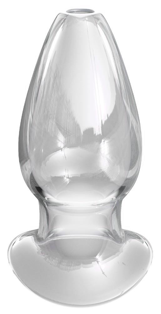 The tunnel wants to be filled…!Hollow butt plug with a stopper that prevents the plug from slipping in too far. Perfect for refreshing enemas and games with a mini vibrator. Exclusive, transparent design made out of borosilicate glass. Holds up to 118 ml.Complete length 12.2 cm, width 7.1 cm, inner Ø 3.6 cm. Borosilicate glass.