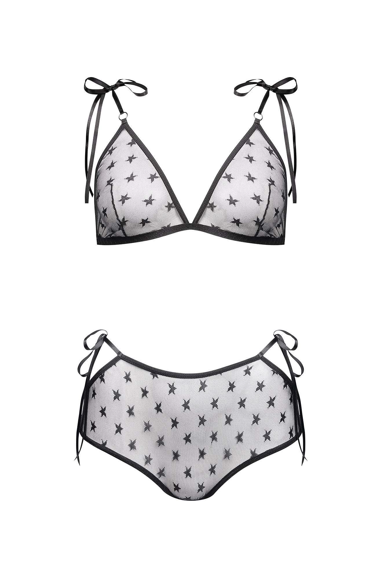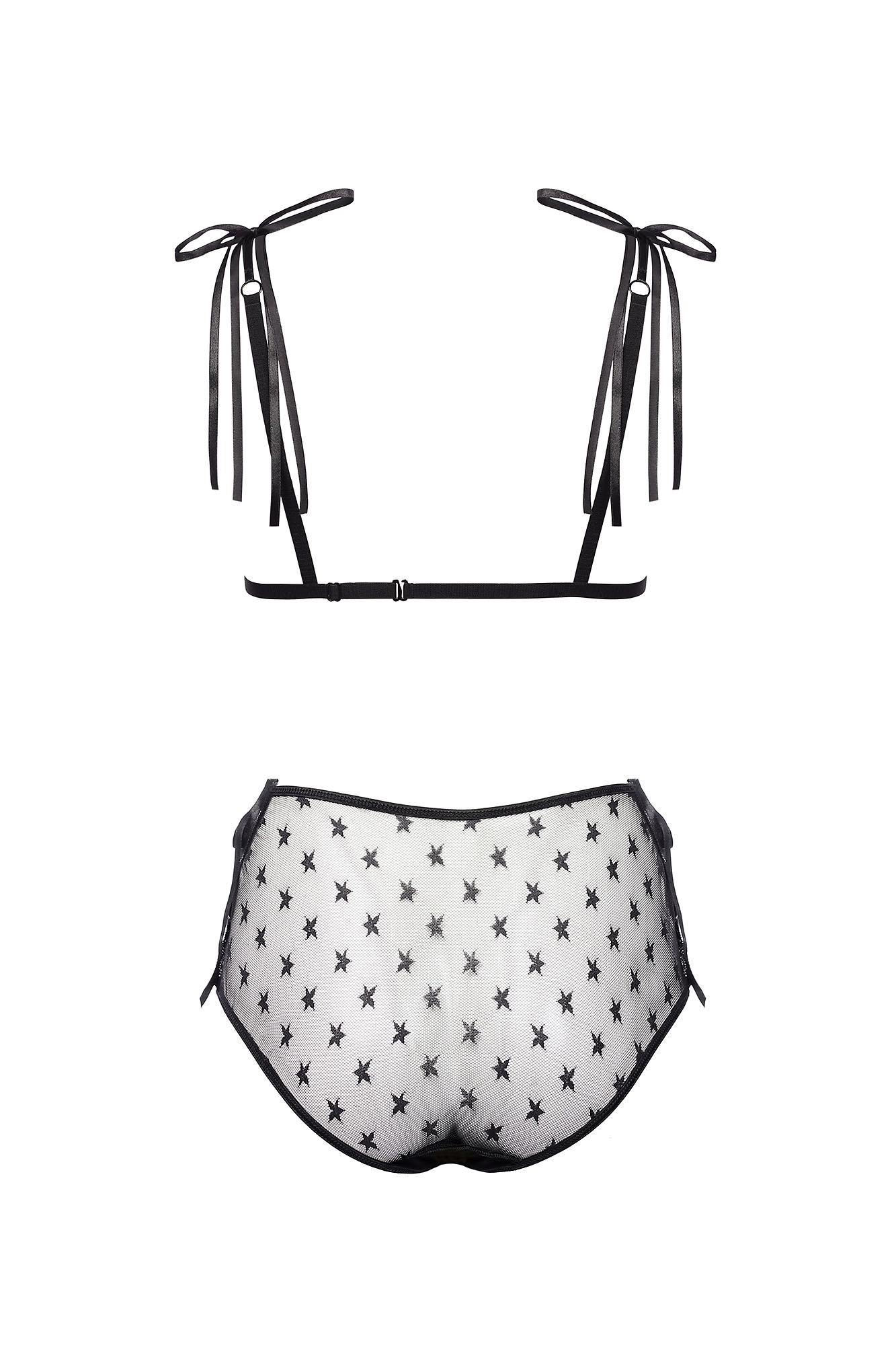 Biustonosz Amelie to romantyczny, a zarazem uwodzicielski model. Cechami charakterystycznymi projektu są: wyjątkowy tiul o wzorze delikatnych, wypukłych gwiazdek oraz ozdobne wiązania.