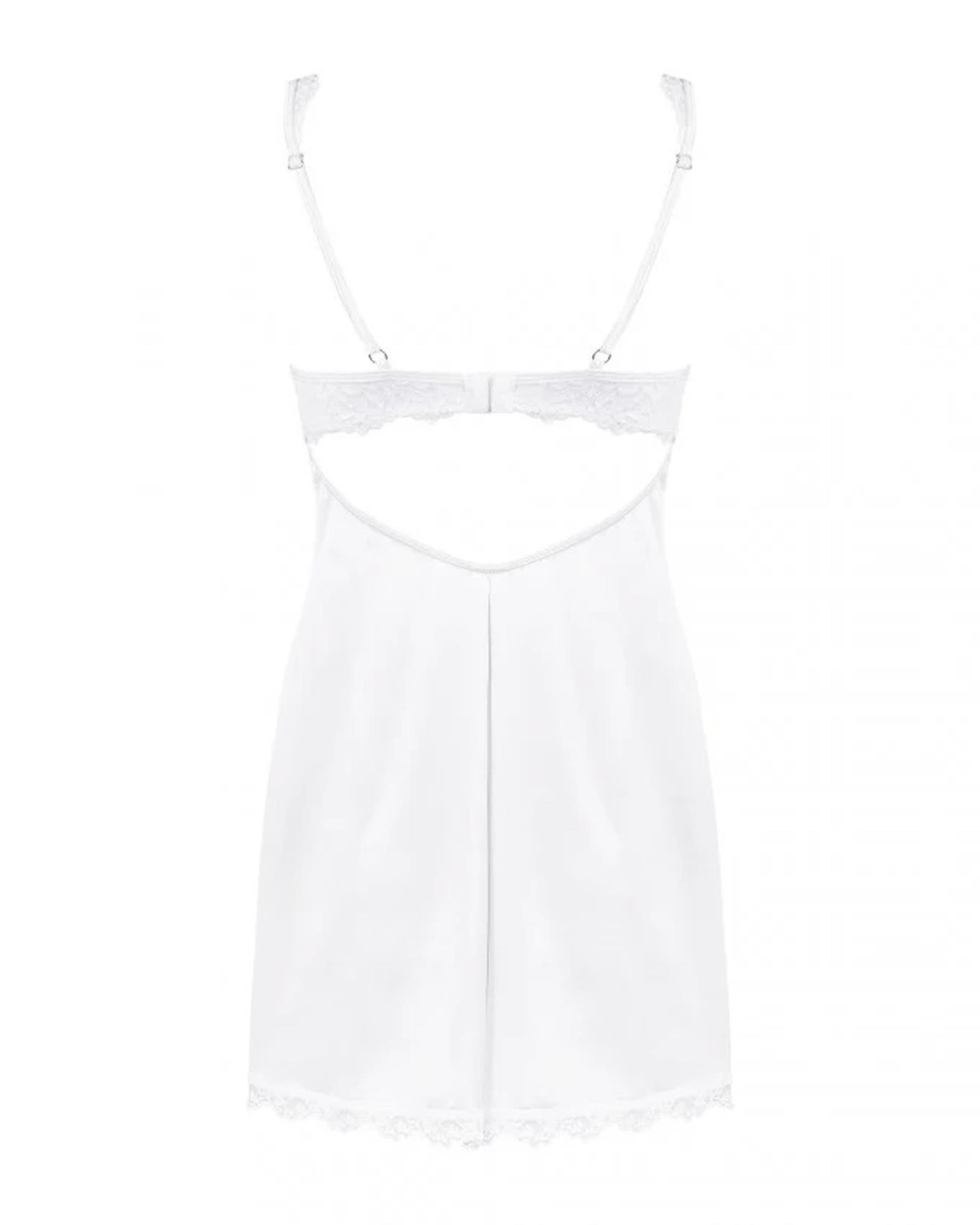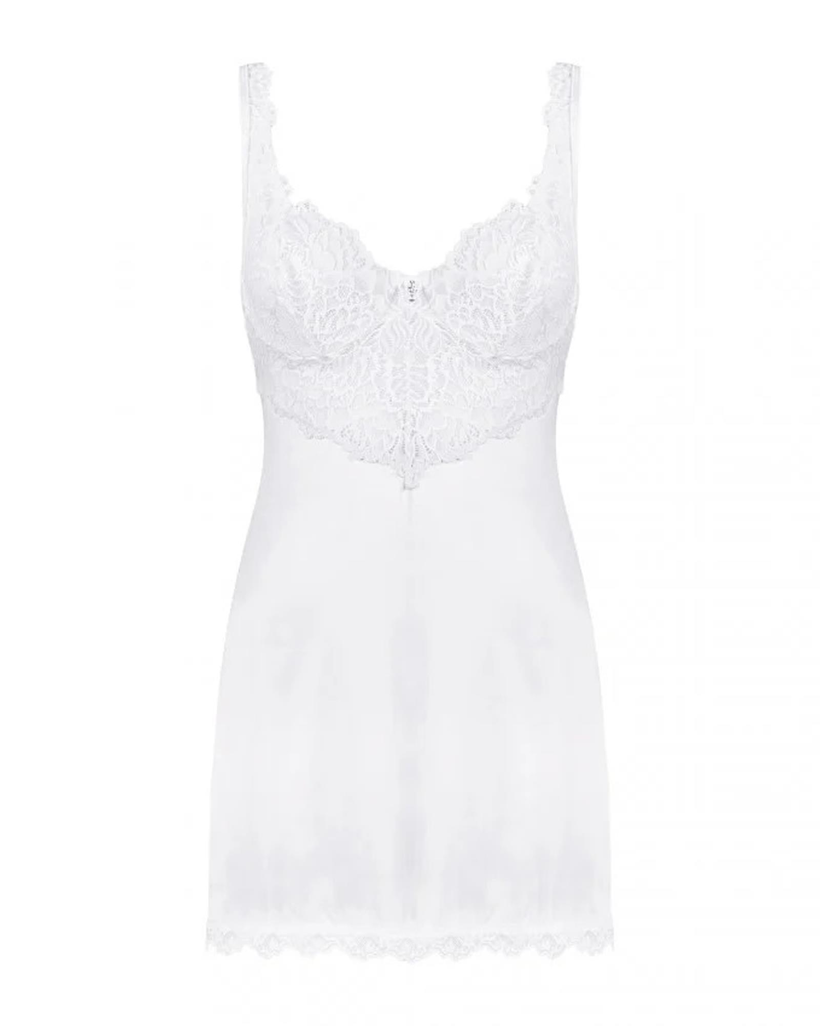 Kobieca, odważna a przy tym niezwykle subtelna koszulka. Za pomocą pięknie skrojonego fasonu i zachwycająco delikatnego materiału podkreśli kształty i uwydatni zalety każdej figury. Zmysłowe wykończenie na dole idealnie komponuje się z eleganckim wzorem koronki na dekolcie. Całość zachwyca, dodaje wdzięku i pozostawia miejsce na wyobraźnię.Poznaj więcej szczegółów: – biała koszulka Amor Blanco w zestawie ze stringami -kobieca koronka na górze – dodaje elegancji – zmysłowy krój – podkreśla sylwetkę – zdobione, regulowane ramiączka– umożliwiają odpowiednie dopasowanie -biustonosz z fiszbinami– idealnie podtrzymuje biust – regulowane zapięcie na plecach– zapewnia komfort i wygodę – biżuteryjna ozdoba na biuście – czarujący element – miłe w dotyku materiały (95% poliester, 5% elastan)