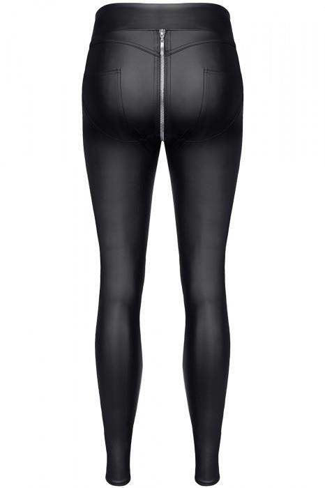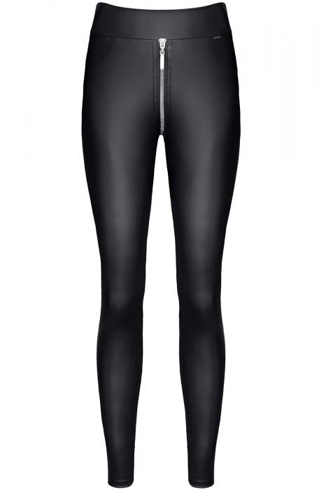 Czarne leginsy z lekko obniżonym stanem oraz srebrnym ekspresem z przodu i z tyłu.Wykonane z wetlook’a 360 stopni: Materiał jest miły w dotyku, a przede wszystkim elastyczny i rozciąga się w każdym kierunku. Te cechy powodują, że spodnie są wygodne i doskonale dopasowują się do ciała ukazując smukły kształt nóg. Dają poczucie 2-giej skóry.Konstrukcja na linii pośladków została specjalnie przygotowana, aby atrakcyjnie uwypuklić ich kształt. Ozdobny, srebrny ekspres odpinany z przodu i z tyłu. Wyszukana zabawa i niezapomniane chwile gwarantowane.Spodnie posiadają szlufki do założenia paska.Doskonale pasują m.in. do topu BRZita001 – widocznego na zdjęciach.Kolor: czarnyRozmiary: S,M,L,XL,XXLSkład surowcowy: 95% poliester / 5% elastan – wetlook 360 stopni.