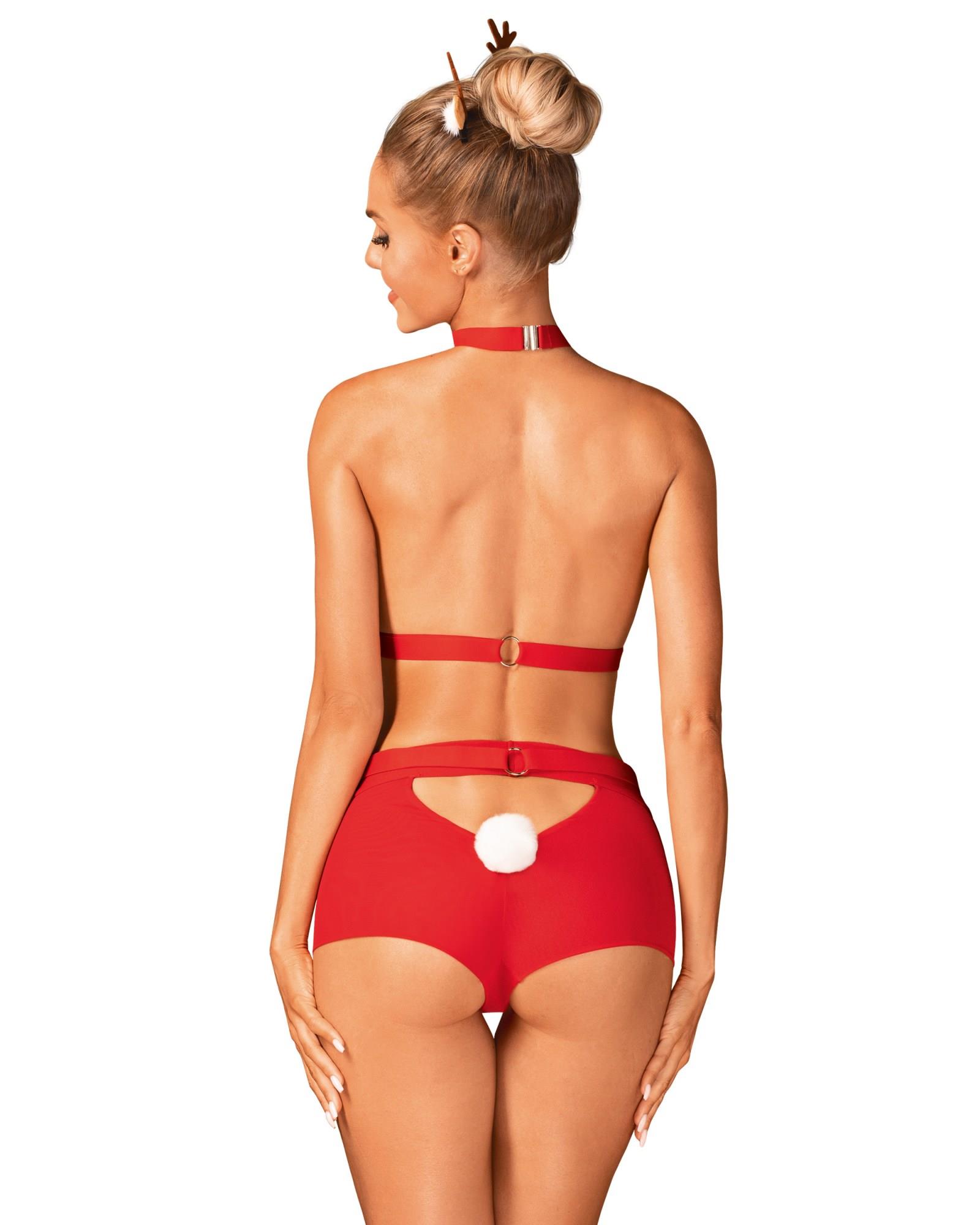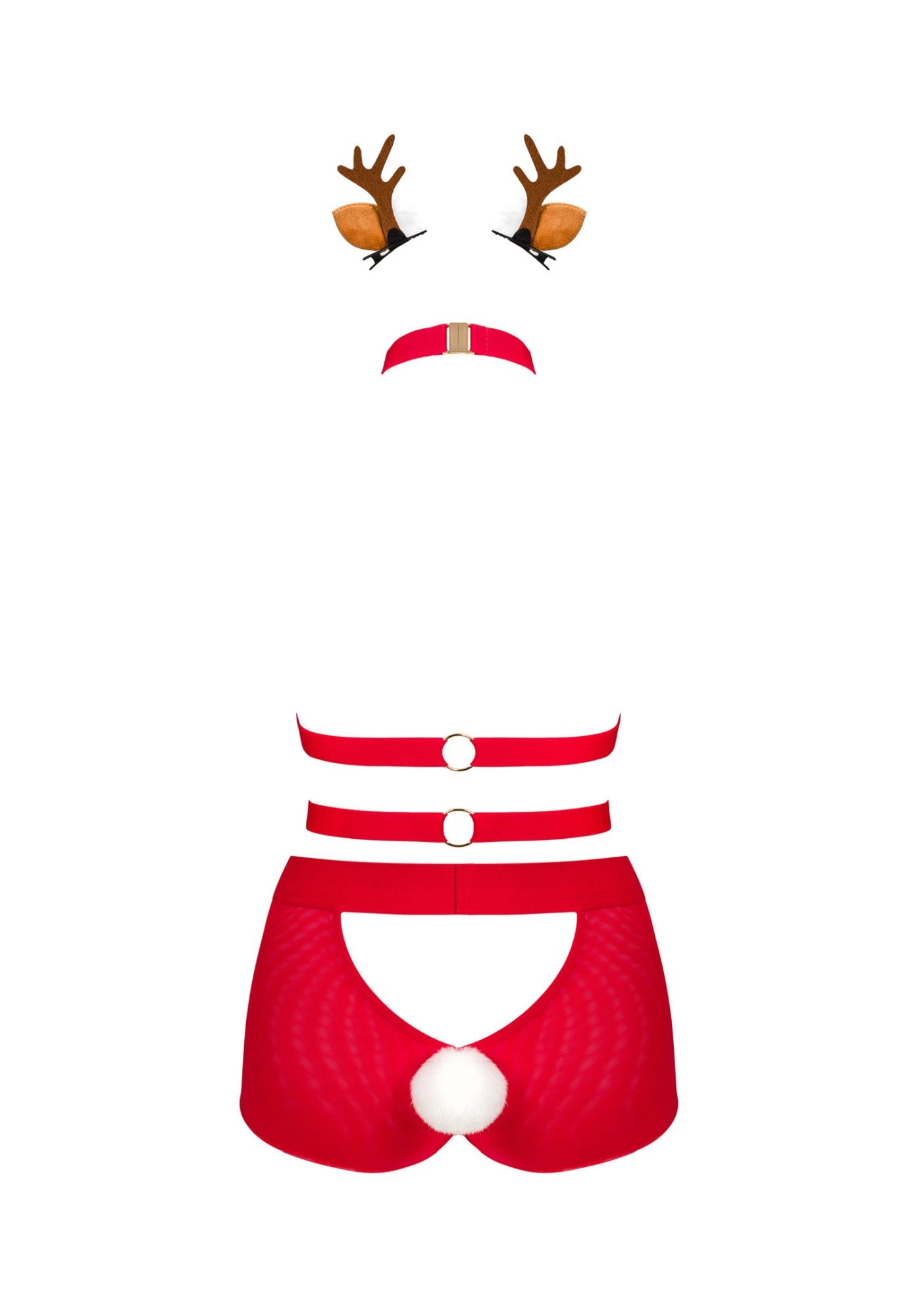 Zmysłowa Pani Renifer wie jak podnieść temperaturę zimowego wieczoru! Ten seksowny komplet gwarantuje pełne przyjemności chwile z ukochaną osobą. Kuszący krój i niezwykle pikantne elementy – uprząż, majtki i frywolna opaska z uszami, tworzą razem figlarną stylizację w świątecznym klimacie. Poznaj więcej szczegółów:- seksowny komplet Pani Renifer- regulowana, czerwona uprząż – intryguje i pięknie podkreśla kształty- kobiece majtki z kuszącym wycięciem na pośladkach, zdobione białym puszkiem – frywolny i zabawny dodatek – wygodne zapięcie na szyi – komfort noszenia- uszy renifera – figlarny dodatek – błyszczące detale – szyk i elegancja- miłe w dotyku materiały (majtki: 94% poliamid, 6% elastan, uprząż: 90% poliamid, 10% elastan, opaska: 25% PET, 50% iron, 25% poliester)