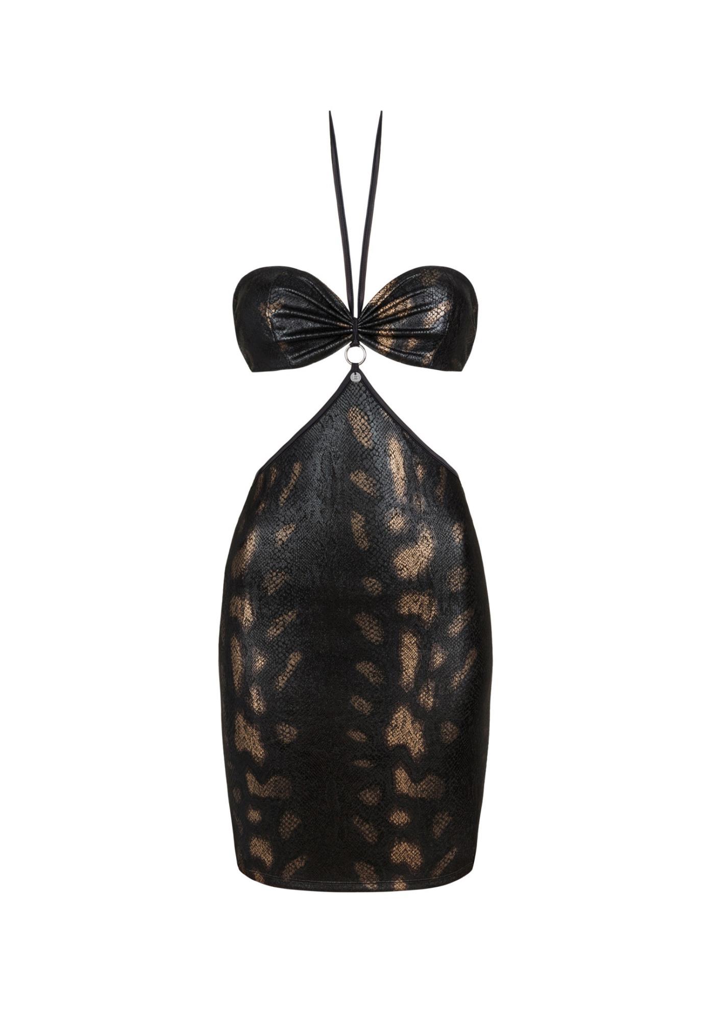 Bielizna w formie sukienki? Tak, i to baaardzo seksownej! Ten model podgrzeje atmosferę wieczoru z ukochaną osobą! Wyjątkowy design i unikalny fason dodaje seksapilu i zmysłowo podkreśla atuty sylwetki. Jeśli lubisz nietuzinkowe rozwiązania, sukienka Vivianty jest dla Ciebie stworzona!Poznaj więcej szczegółów:- sukienka Vivianty o wyjątkowym kroju- biustonosz typu bandeau – komfort noszenia – zapięcie na plecach – idealne dopasowanie- wygodne wiązanie na szyi – połyskujące kółeczko łączące górę z dołem – szyk i elegancja- błyszczący materiał – piękny wygląd- kuszące wycięcia pod biustem i na plecach – przyciągają uwagę- przyjemny i elastyczny materiał (85% poliester, 8% elastan, 7% poliuretan)