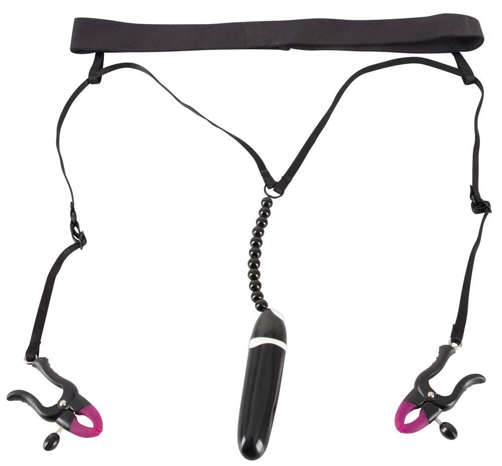 Zaciski są przymocowane do warg sromowych, aby je rozłożyć i odsłonić łechtaczkę. Za pomocą śrub intensywność zacisków można zmieniać od miękkiej do twardej. Sznurek ma również mały wibrator, który jest przymocowany do pereł stymulujących łechtaczkę. Bateria jest dołączona.Obwód pasa 61 cm, może rozciągać się do ok. 177 cm. Długość każdego paska zaciskowego 11 cm (z możliwością regulacji), rząd pereł o długości 8,5 cm. Całkowita długość wibratora 8,6 cm, średnica 1,8-2,1 cm.