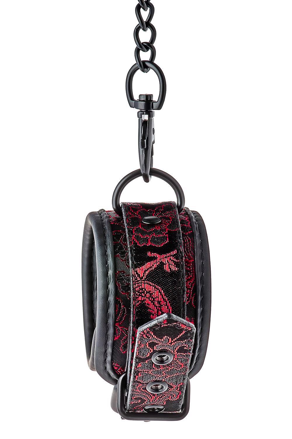 Stylowe kajdanki.W pełni regulowane za pomocą prostej klamerki pasowej.Mankiety w połączeniu z czarnym niklowanym łańcuchem, są wyłożone miękkim, a jednocześnie wytrzymałym materiałem z neoprenu, co zapewnia seksowną i komfortową zabawę.