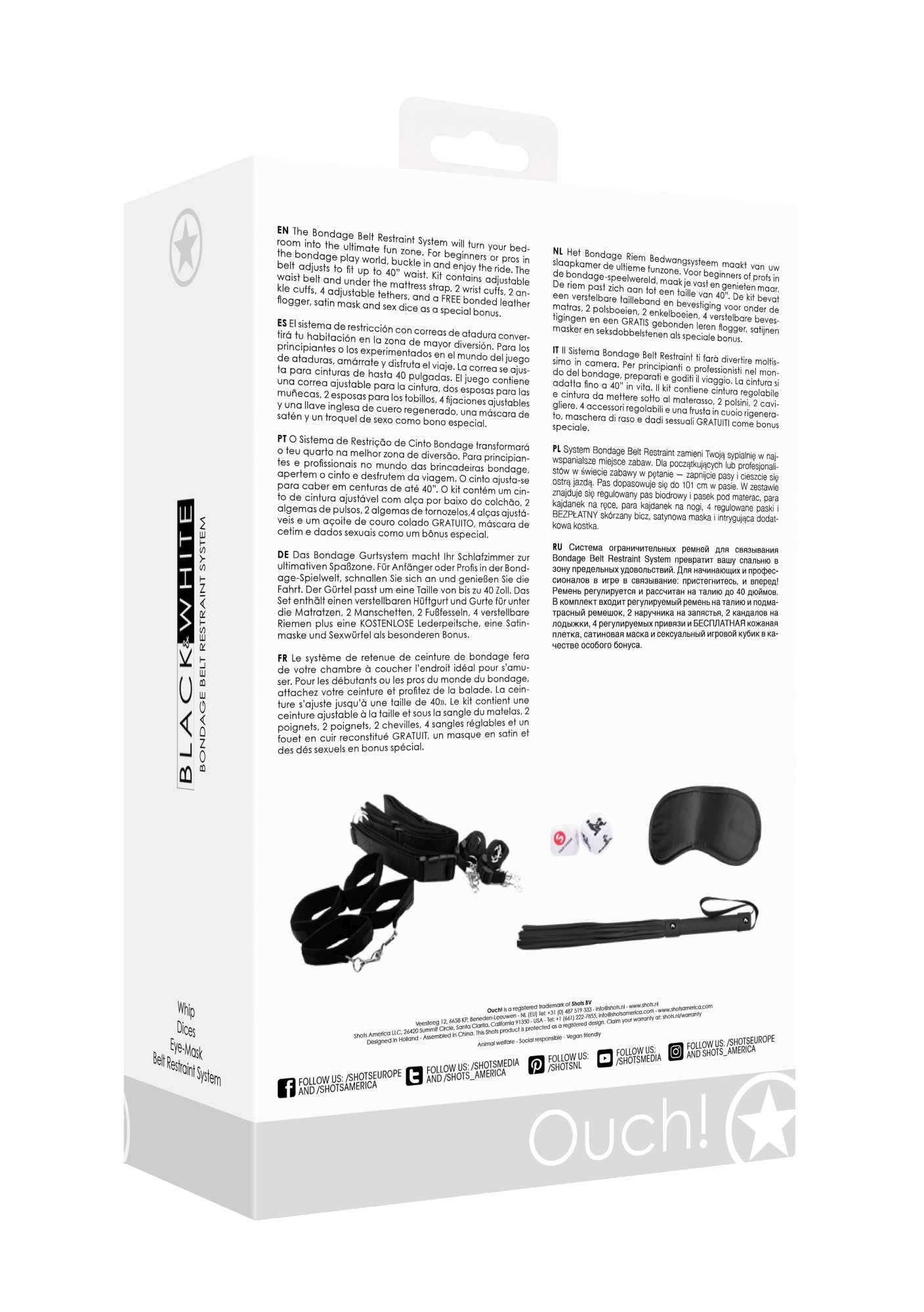 System Bondage Belt Restraint zamieni Twoją sypialnię w najwspanialsze miejsce zabaw. Dla początkujących lub profesjonalistów w świecie zabawy w pętanie zapnijcie pasy i cieszcie się ostrą jazdą. Pas dopasowuje się do 101 cm w pasie. W zestawie znajduje się regulowany pas biodrowy i pasek pod materac, para kajdanek na ręce, para kajdanek na nogi, 4 regulowane uwięzie i DARMOWY skórzany pejcz, satynowa maska i ponętna, bonusowa kostka.Wymiary opakowanie 26,50 x 16,50 x 8 cmWaga opakowanie 815 gramMasa produktu 597 gramSpecyfikacje:BiczWaga: 31 gramówWymiary: 55 x 5 x 1,4Kostka do gryWaga: 18 gramówWymiary: 2,8 x 2,8 x 2,8 cmMaskaWaga: 6 gramówWymiary: 19 x 9 x 0,2LinaWaga: 540 gramówMateriały Poliester, Akryl, Skóra, Metal, Taśmy, SBR