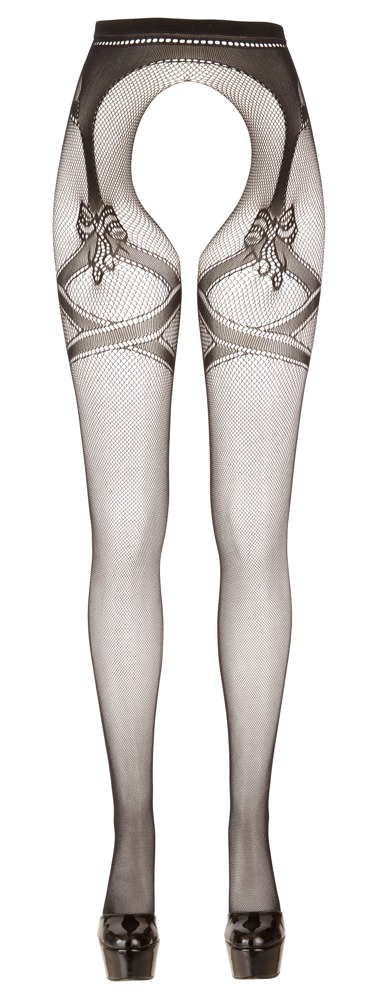 Thrilling tights with a hot surprise!These black net tights are extremely sweet and super sexy. The fine, soft net clings to your legs, and the sewn-on seam at the back with a bow and garter on each leg is very tempting. Your partner will definitely struggle to keep their hands off you, especially as the tights are crotchless… 85% polyamide, 15% spandex. Oeko-Tex certified.