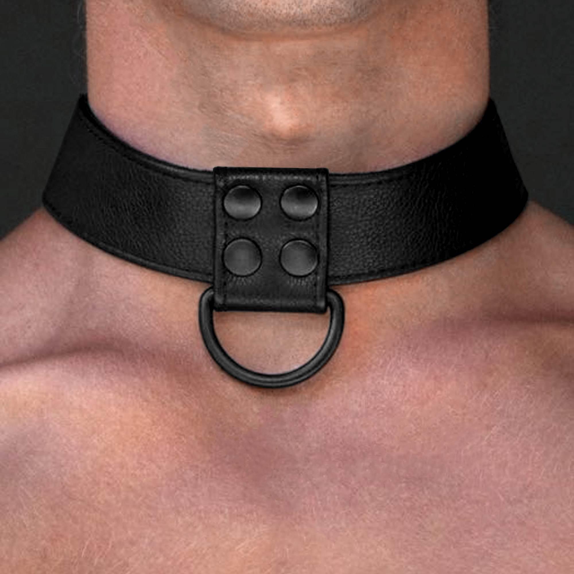 Czarna regulowana obroża do zabaw BDSM na łańcuchu