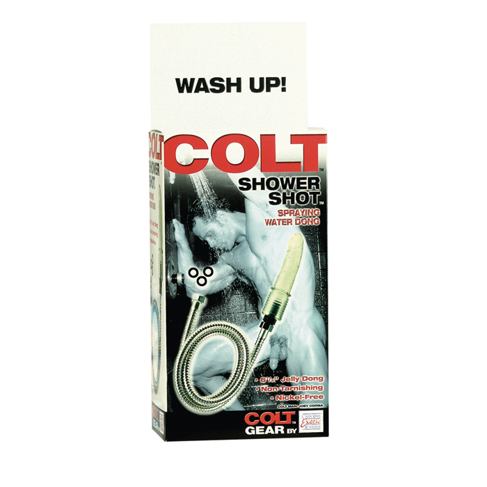 Colt Shower Shot Water Dog to specjalny prysznic analno-waginalny z nasadką w kształcie członka. Jest to żelowy fantom penisa, który instaluje się do punktu z woda bieżącą np. prysznic, kran. Dildo wykonane jest z żelu, wewnątrz jest puste i posiada wiele małych otworów przez które będzie wypływać woda i stymulować ścianki pochwy czy anusa od wewnątrz. Jest to bardzo praktyczna zabawka erotyczna do mokrych zabaw i masturbacji za pomocą cienkich strumieni wody. Z wyglądu jest ono bardzo realistyczne, to dzięki dokładnemu odwzorowaniu główki i pokrywających go żył. Dodatkowo w zestawie dołączony jest niedeformujący się, bezsilnikowy wąż wraz z uszczelką. Instalacja węża jest bardzo łatwa, zamontujesz dildo bez pomocy wyspecjalizowanego hydraulika. Dosłownie w ciągu kilku sekund i bez użycia narzędzi, wystarczy nakręcić na kran nakrętkę która znajduje się na końcu węża. Dzięki temu zestawowi można poczuć wiele niezapomnianych doznań, Twoje kąpiele nabiorą zupełnie innego wymiaru. Zabawka może być również używana w celu wykonania lewatywy. Dildo prysznic, wyprodukowane zostało z najwyższej jakości materiałów przez renomowaną amerykańską firmę Colt.