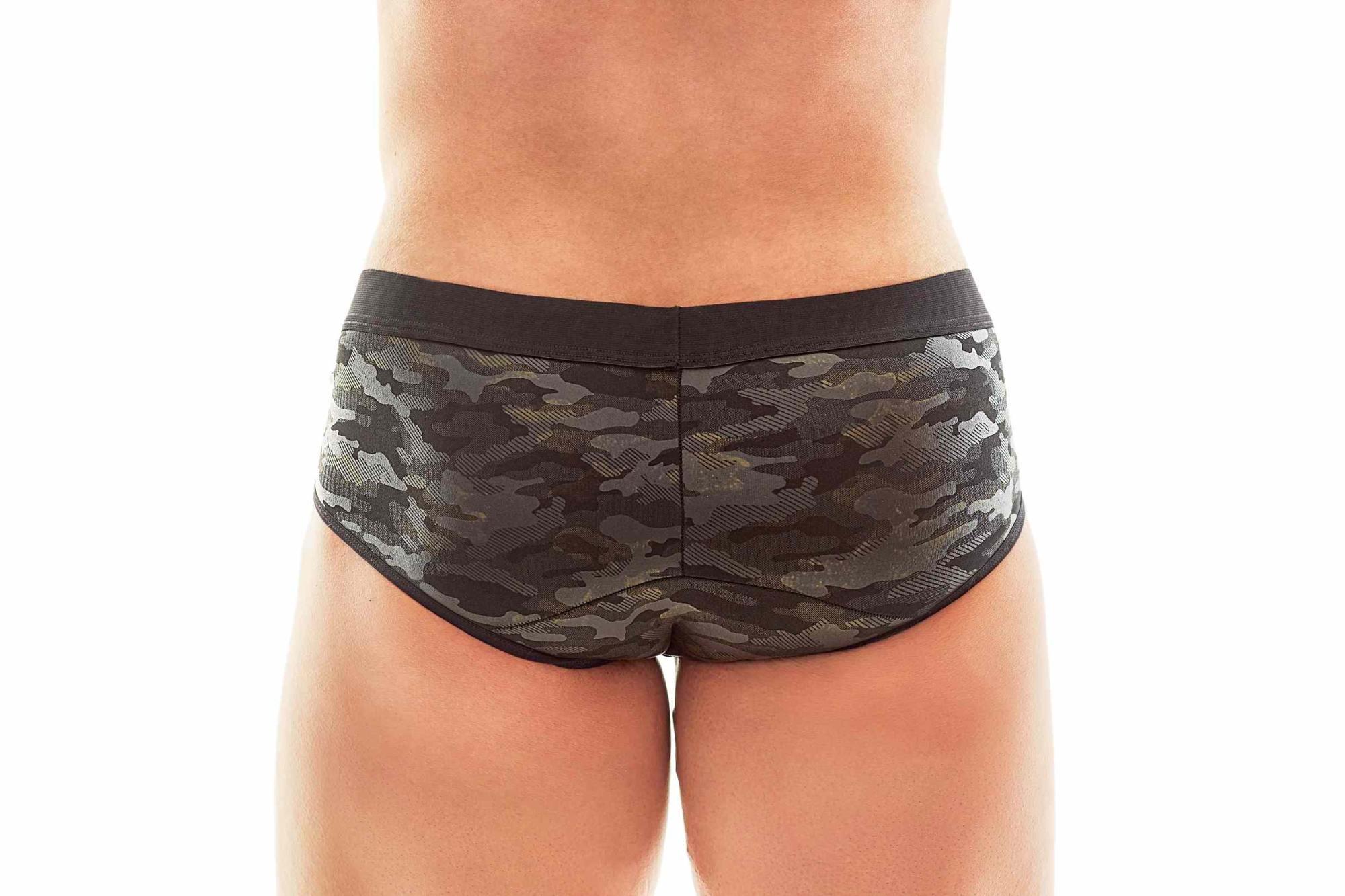Szalenie eleganckie męskie majtki z super efektownego materiału z imitacją wzoru moro, doskonale leżą na każdym mężczyźnie. Uwodzenie w dobrym smaku, gwarantowane