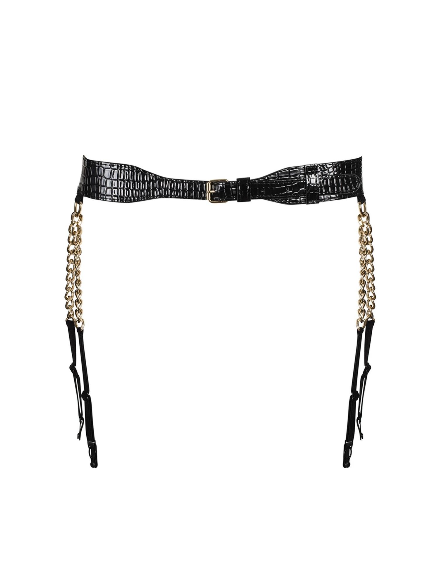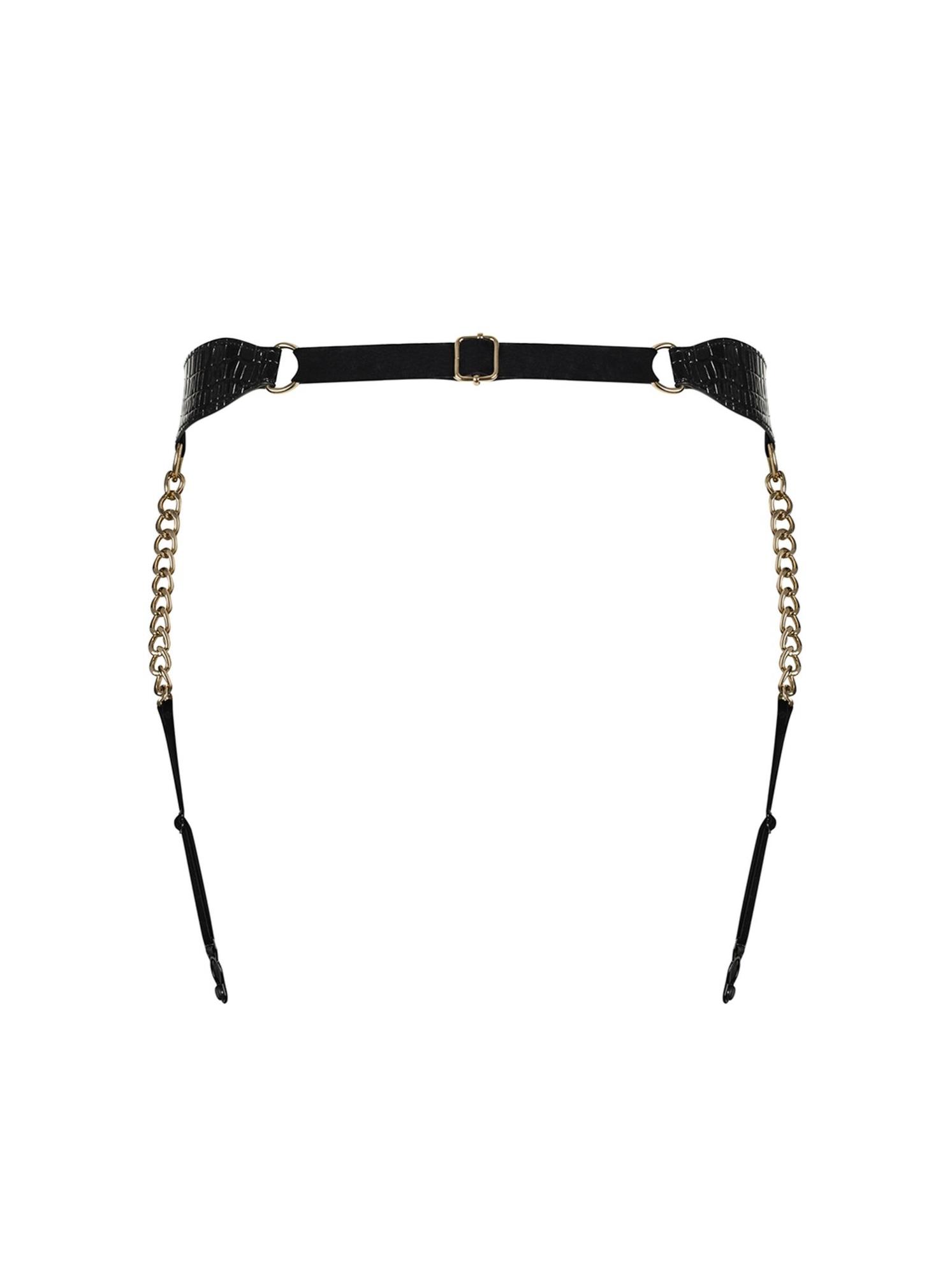 - paski do pończoch stworzone z połączenia czarnego materiału i złotych łańcuszków