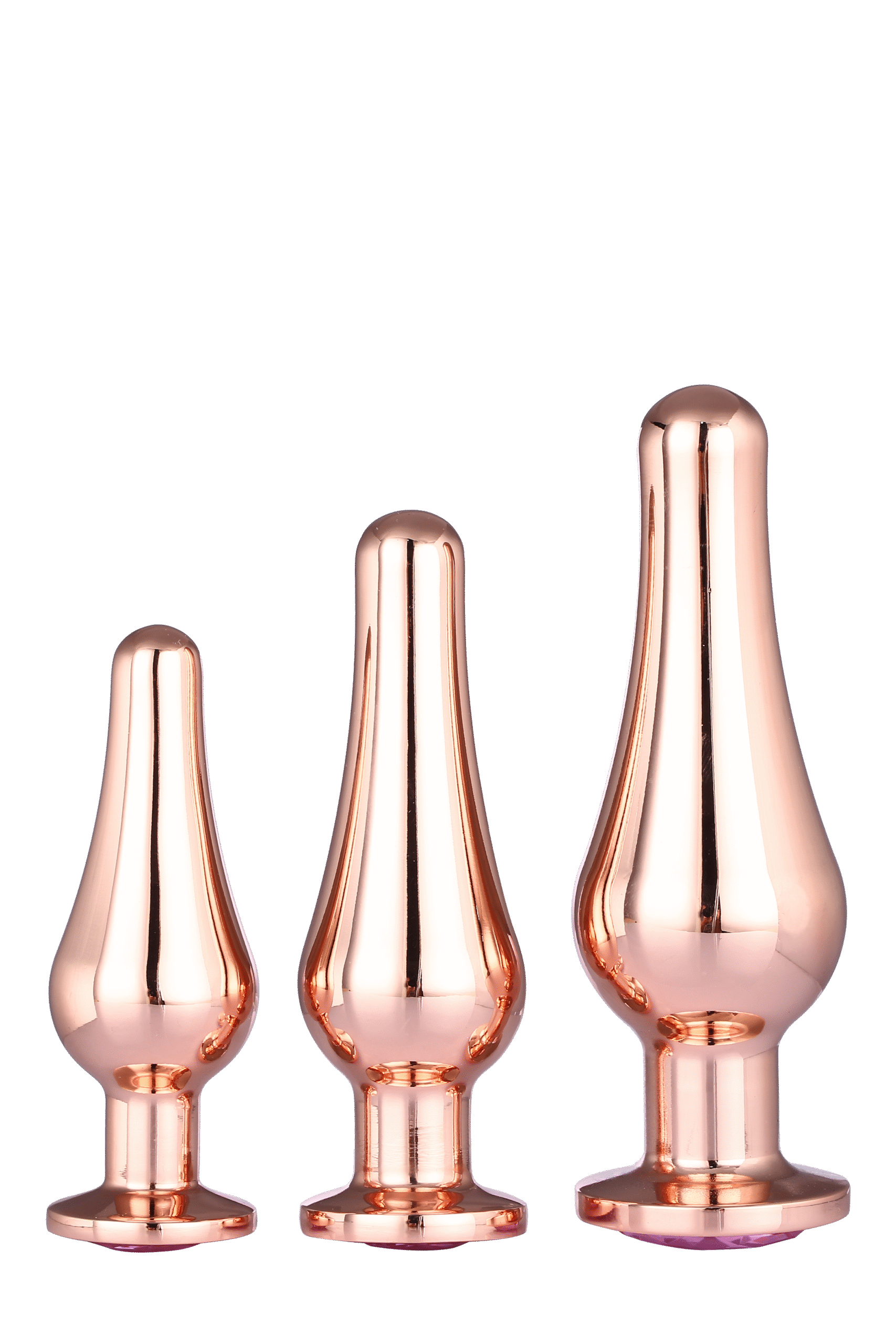 Kolekcja Gleaming Love przedstawia ten zestaw stożkowatych i lśniących zatyczek analnych z klejnotem w podstawie. Te zabawki przyjemności, wykonane z gładkiego, lekkiego aluminium i bez szwu, są łatwe do przesuwania, a zwiększająca się szerokość gwarantuje przyjemność. Rozkloszowana podstawa zapewnia poczucie bezpieczeństwa, jednocześnie utrzymując klejnot wygodnie między policzkami pośladków.Ozdobione klejnotami zatyczki są pięknie ozdobione delikatnym okrągłym kamieniem szlachetnym. Bezspoinowe korki analne od czubka do podstawy mają połyskliwy połysk, który wspaniale łączy się z blaskiem pasującego klejnotu. Zwężający się stożkowy kształt wtyczek łączy w sobie łatwość użytkowania z erotyczną przyjemnością z tylnych drzwi. Wtyczki Gleaming Love można przed użyciem podgrzać lub schłodzić w wodzie, aby zapewnić dodatkowe doznania.W zestawie znajduje się worek do przechowywania wykonany z miękkiej aksamitnej tkaniny, który zamyka się sznurkiem.Wymiary: Mała długość 9,0 cm Mała średnica 2,9 cm Średnia długość 11,0 cm Średnia średnica 3,4 cm Duża długość 12,7 cm Duża średnica 4,0 cm
