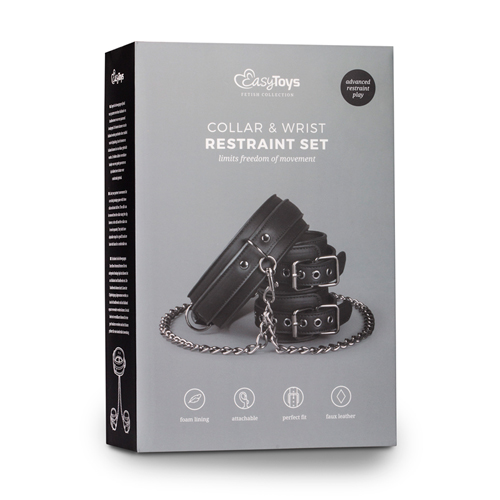 Masz kontrolę, kiedy twój partner ma na sobie ten fantastyczny zestaw niewoli! Składa się z kołnierza na szyję, połączonego z mankietami na nadgarstki, które można łatwo odłączyć od siebie za pomocą klamer. Zabawki są wykonane z wytrzymałej skóry ekologicznej wyłożonej pianką, dzięki czemu są trwałe i wygodne w noszeniu. Kołnierz można regulować w zakresie od 45 do 58 cm, a mankiety można regulować w zakresie od 11 do 28 cm. Łańcuch ma długość 40 cm. Połącz ten specjalny zestaw z innymi zabawkami, takimi jak mankiety na kostki, kneble, zaciski na sutki, aby uzyskać dodatkowe ekscytujące wrażenia.Materiał Skóra PU, MetalWaga 823 gramyKolor Czarny