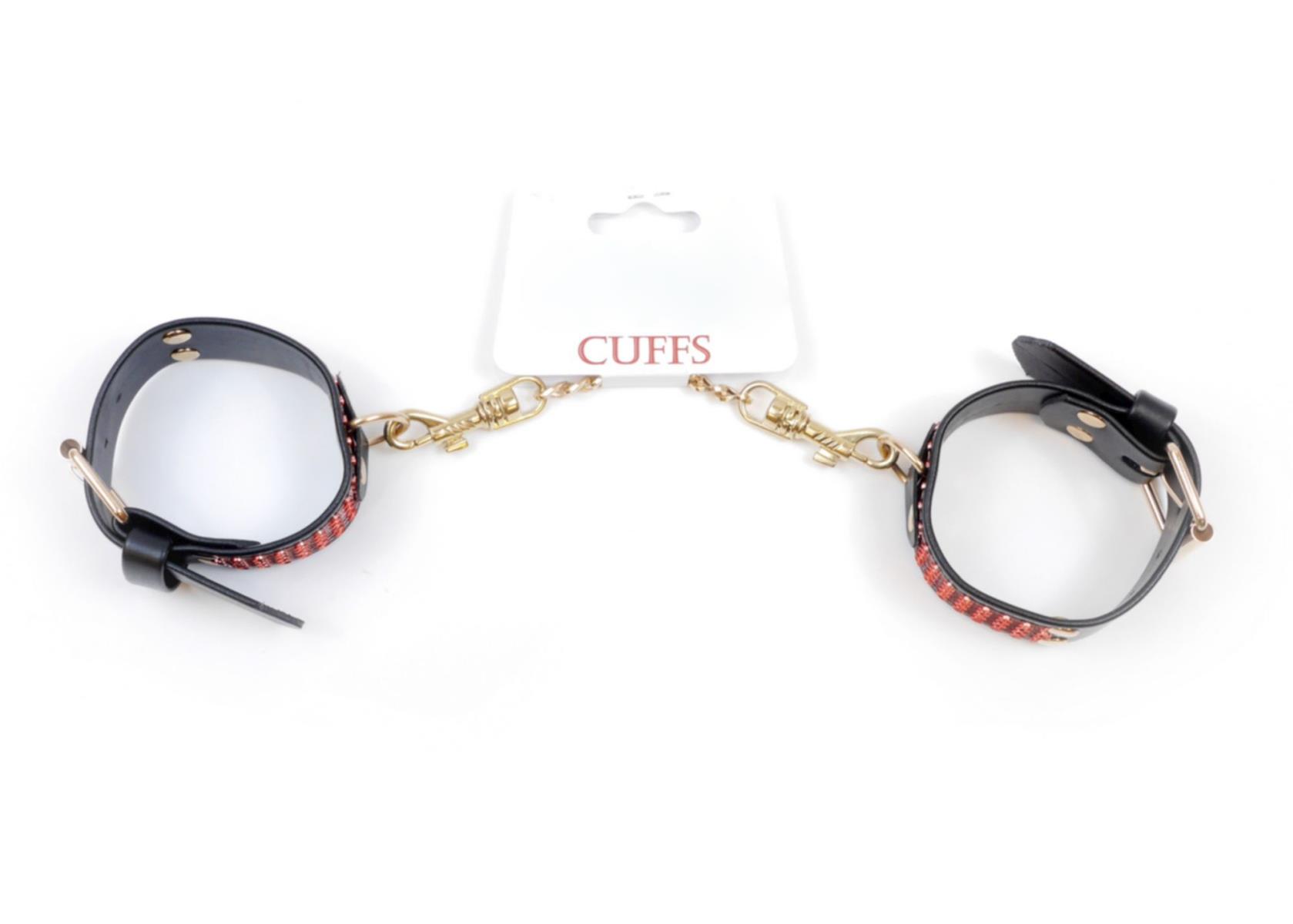 Kajdanki skóra metal sex bdsm czerwone kryształki