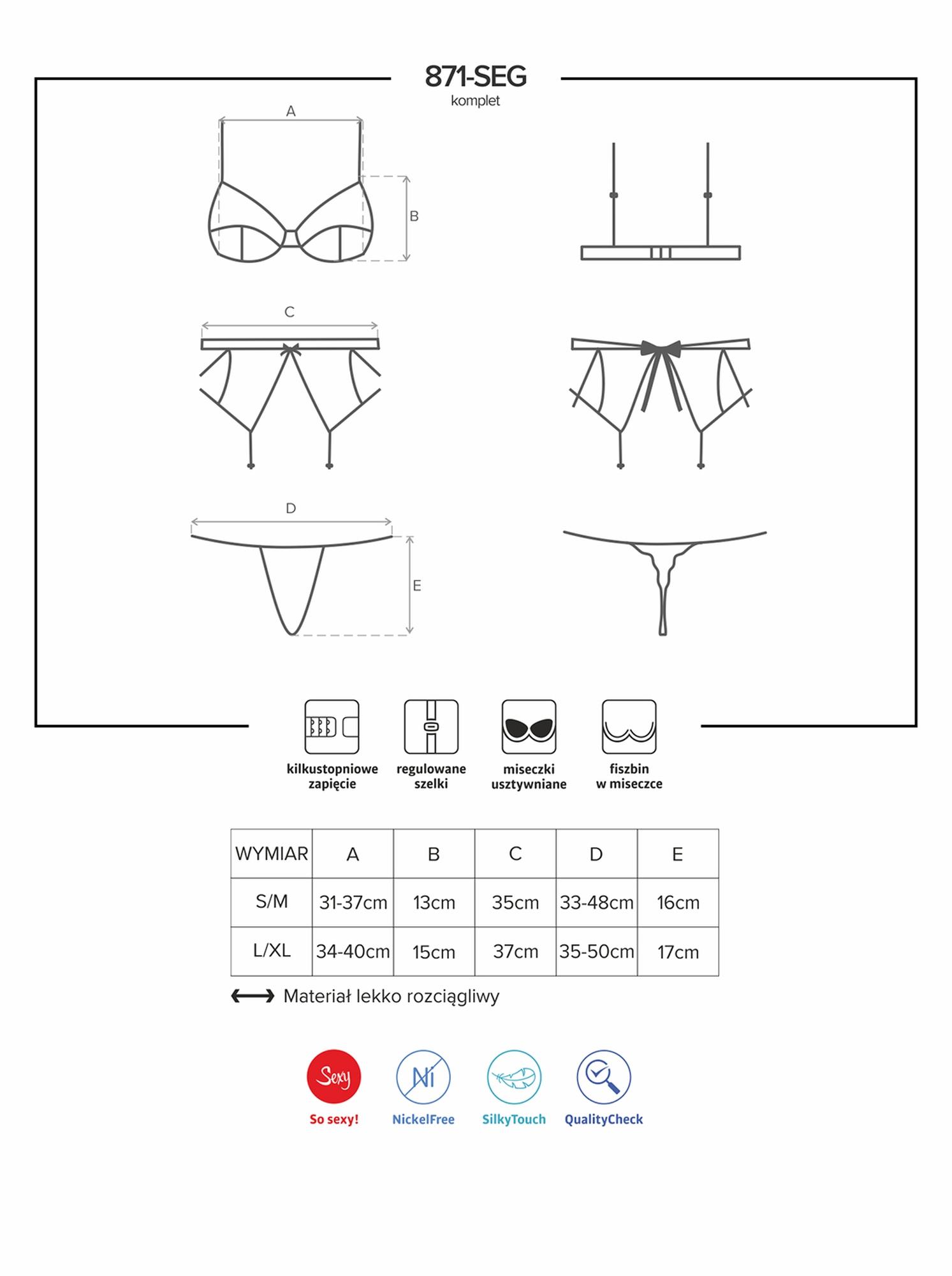 - komplet zawiera biustonosz, pas do pończoch i stringi