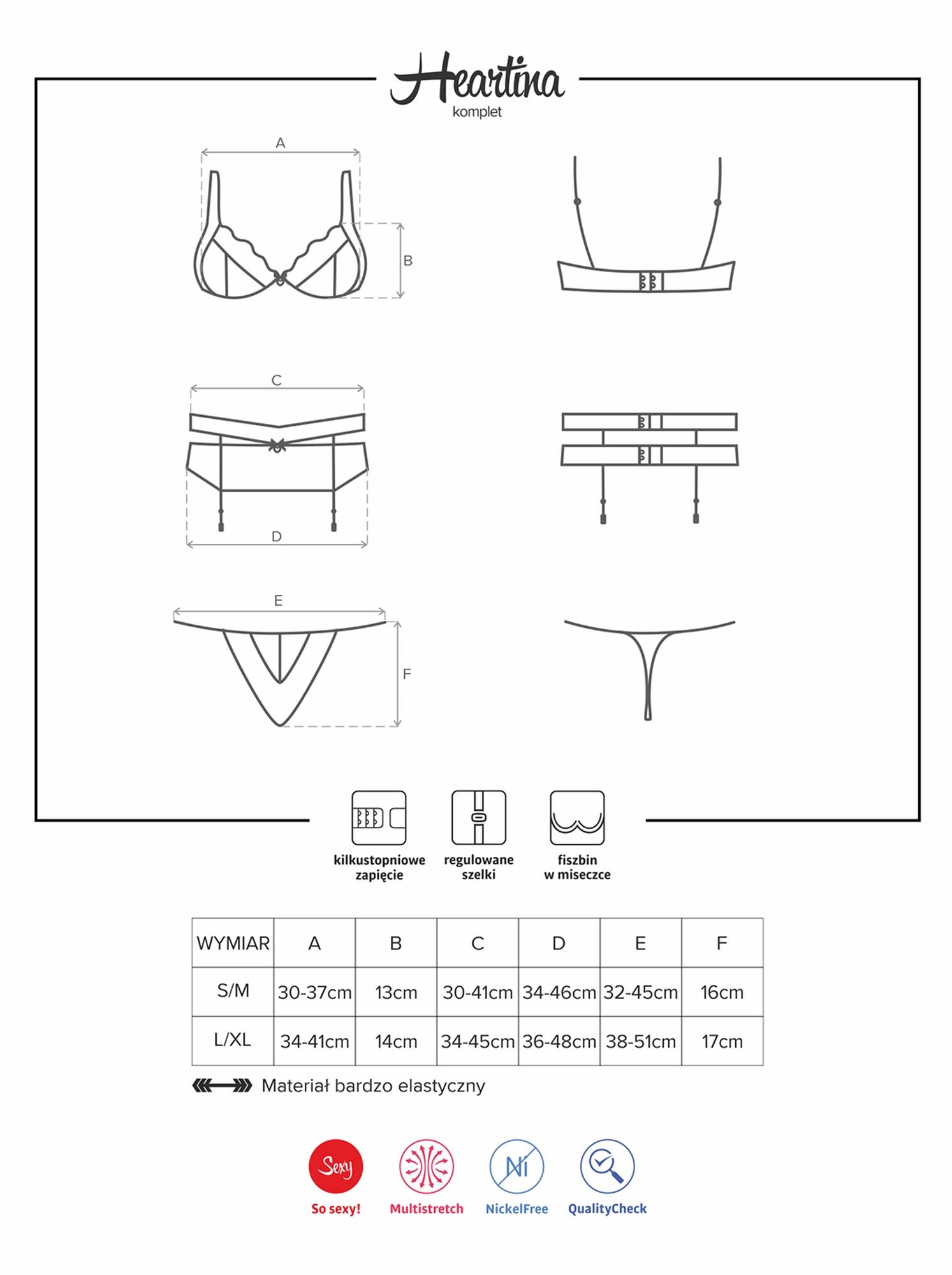 Idealna bielizna dla wyjątkowej kobiety? Mamy ją! Zjawiskowa Heartina pozwoli Ci poczuć się nieziemsko seksownie i spełni… najskrytsze fantazje! Świetny wygląd, doskonałe samopoczucie, zaskakujące doznania. Ten komplecik rozpieszcza do granic możliwości. Wchodzisz w to? Będzie fantastycznie!