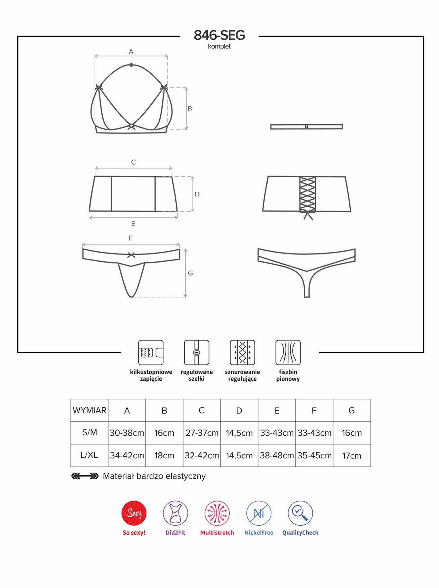 - komplet zawiera biustonosz, koronkowy pas i stringi
