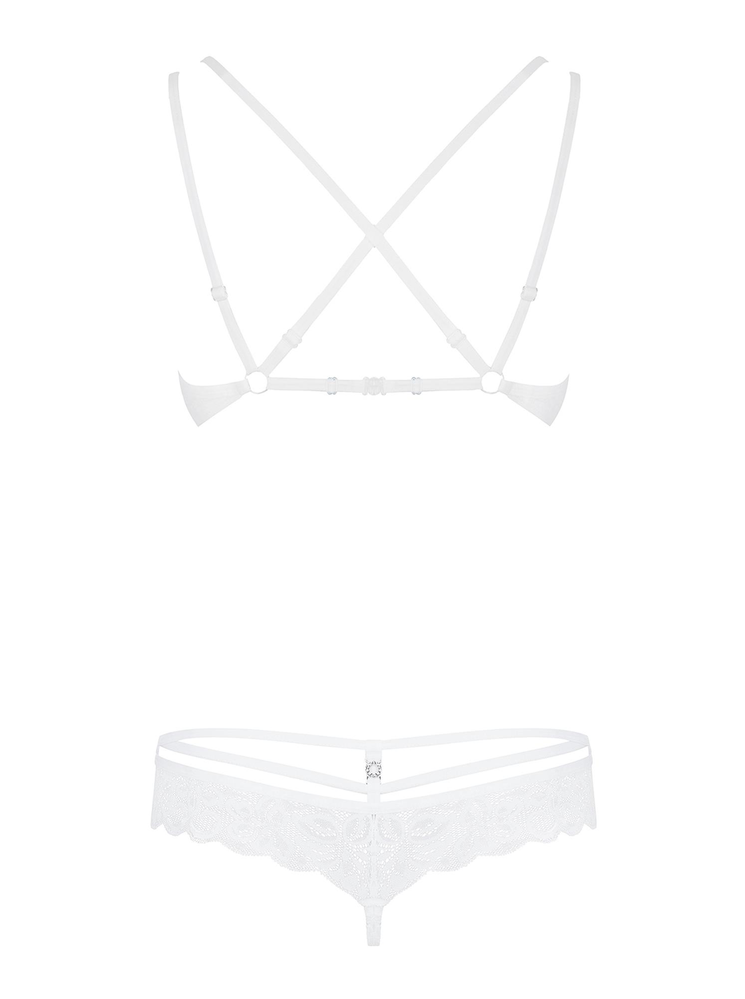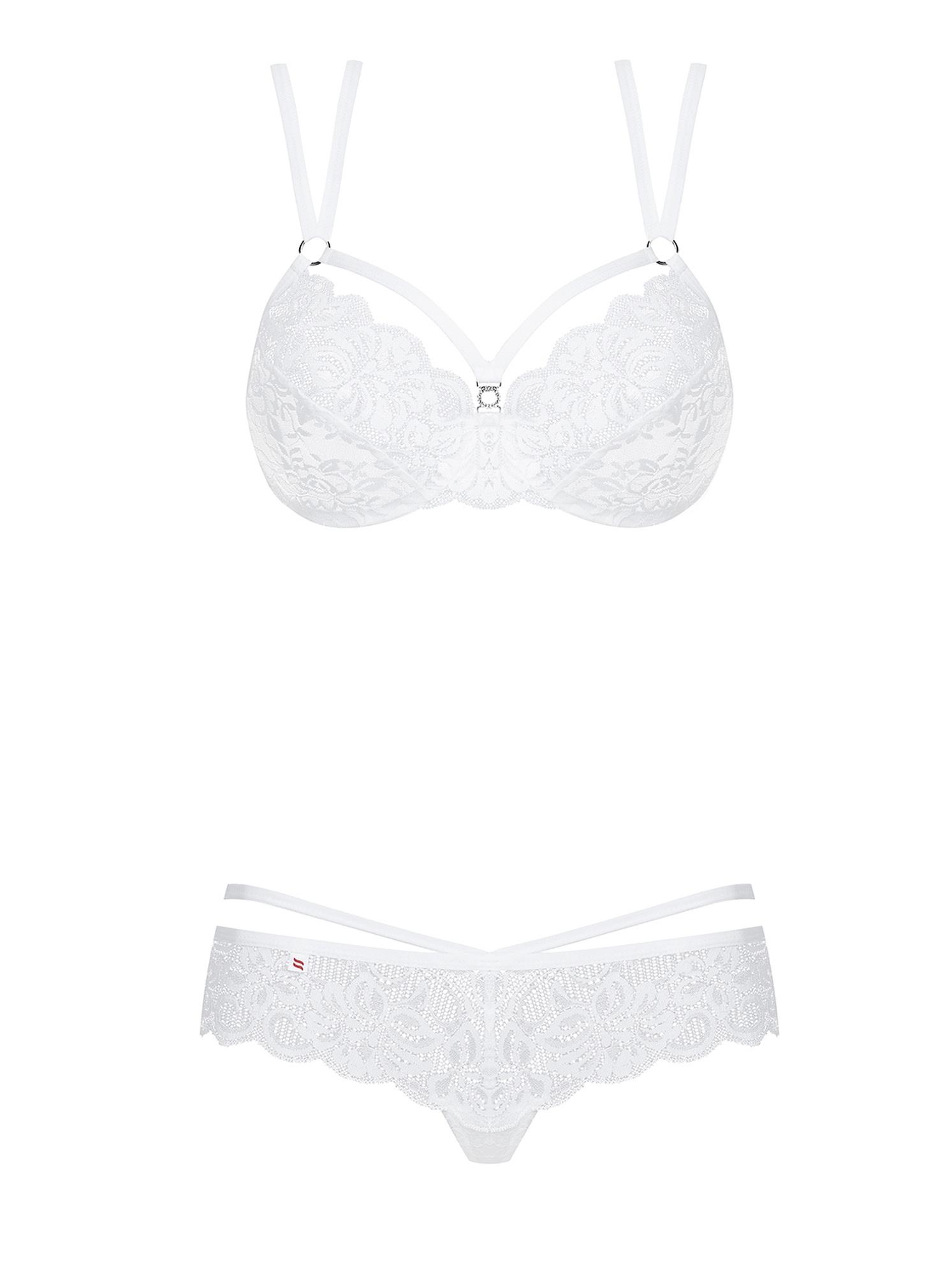 Produkt Polski jakość premium, marka Obsessive – Bielizna erotyczna w której będziesz wyglądać pięknie… Spodobał Ci się ten model? Świetny wybór! Na żywo wygląda jeszcze cudowniej. Nieziemsko piękna biel, kusząca koronka i seksowne paski – zabierz do siebie ten wyjątkowy zestaw. A gdy już będzie Twój, przygotuj się na mnóstwo przyjemnych chwil z Twoim mężczyzną!
