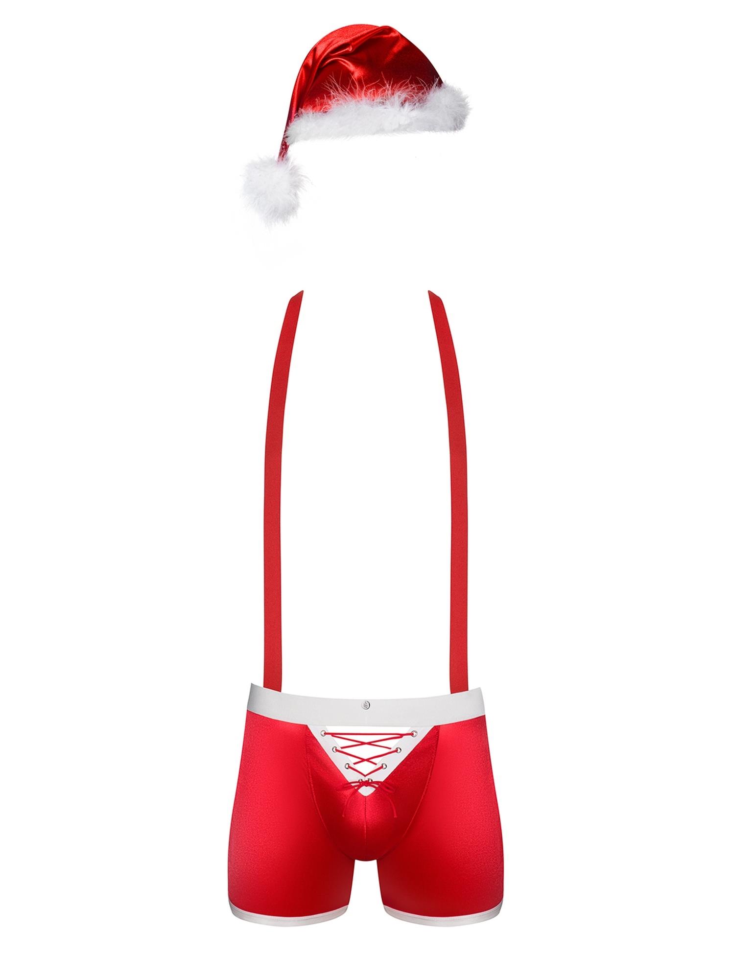 Czerwone bokserki z szelkami i klasyczna czapka mikołajkowa rozpalą nie tylko świąteczny poranek! Która z Was nie chciałaby takiego Mikołaja w swojej sypialni 😉