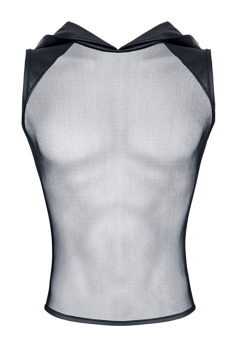koszulka z elastycznej i miłej w dotyku siateczkiszeroki kaptur, ramiona z elastycznej ekoskóry wzmacniające przeszycia92% poliamid / 8% elastan