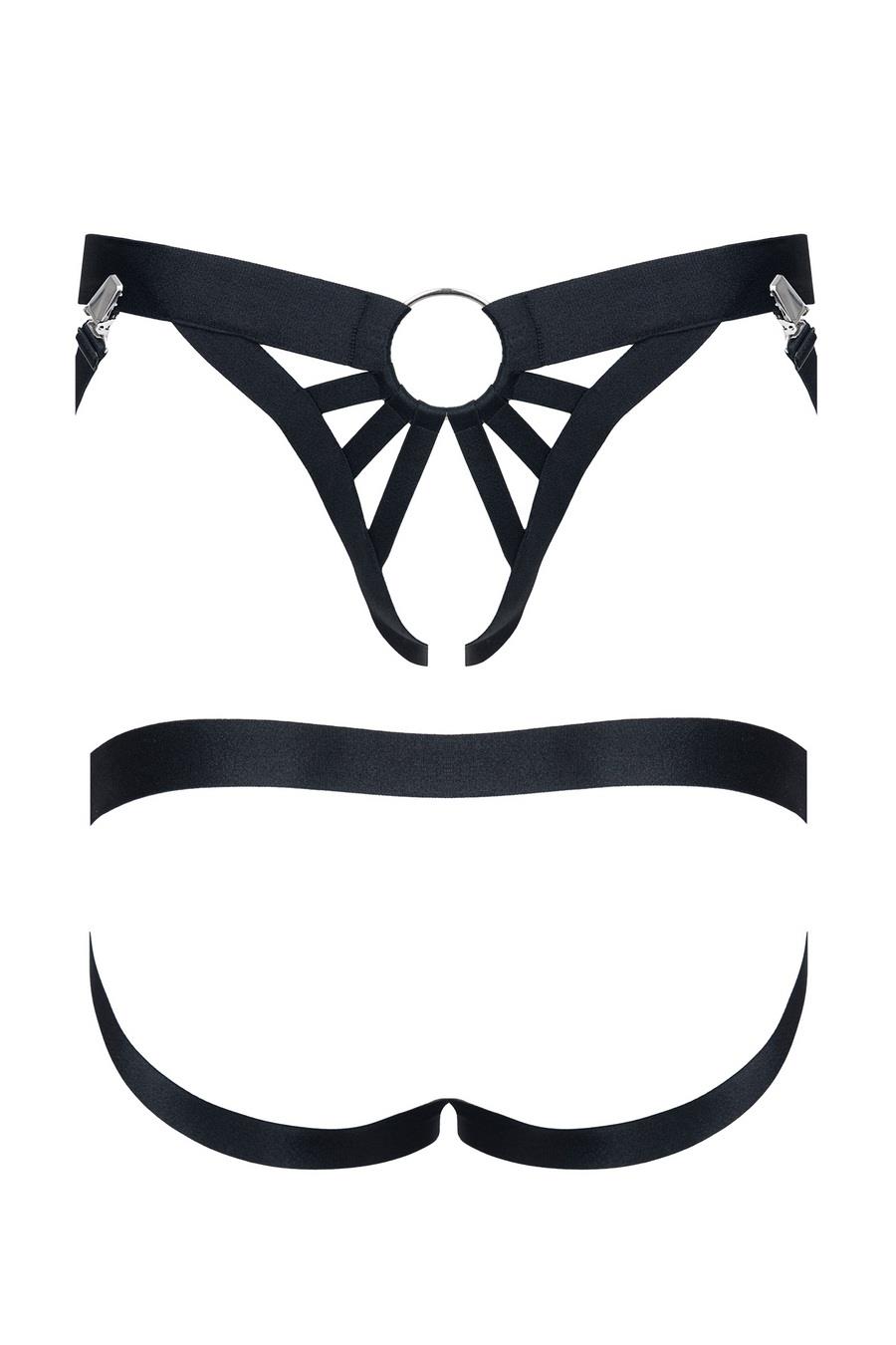 Męskie figi z gumy z otwartym tyłem, elementem dekoracyjnym z przodu i zapięciami s/m