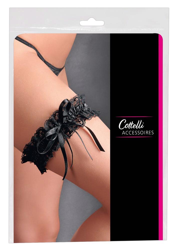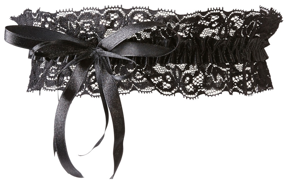 Czarna koronkowa podwiązka z małą ozdobną satynową koronką.