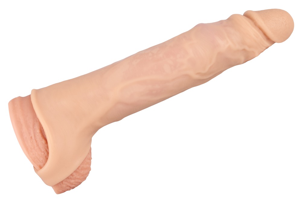 Absolutely amazing! Velvety soft sleeve with pronounced glans a veins. Supports a man’s stamina and extends the penis by about 5 cm. The additional testicle hole provides more support and a pleasant, tight feeling. Complete length 16 cm, inner Ø 3 cm (very flexible). Silicone.