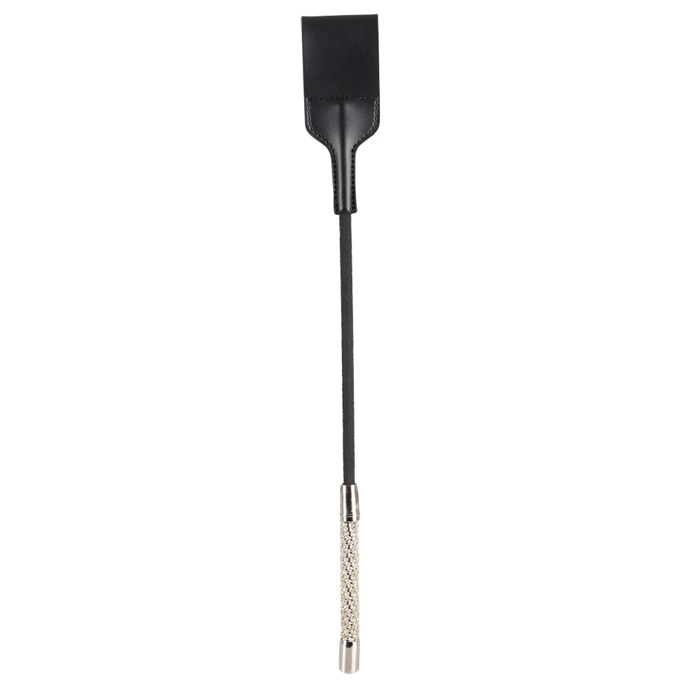 Od delikatnych do mocnych uderzeń!Poczuj i ciesz się pociągnięciami czystej miłości dzięki tej czarnej syntetycznej uprawie. Z końcówką pętelkową, plecioną różdżką i uchwytem z kryształkami. Całkowita długość ok. 44 cm. Poliuretan, metal, różdżka: polichlorek winylu, poliester.
