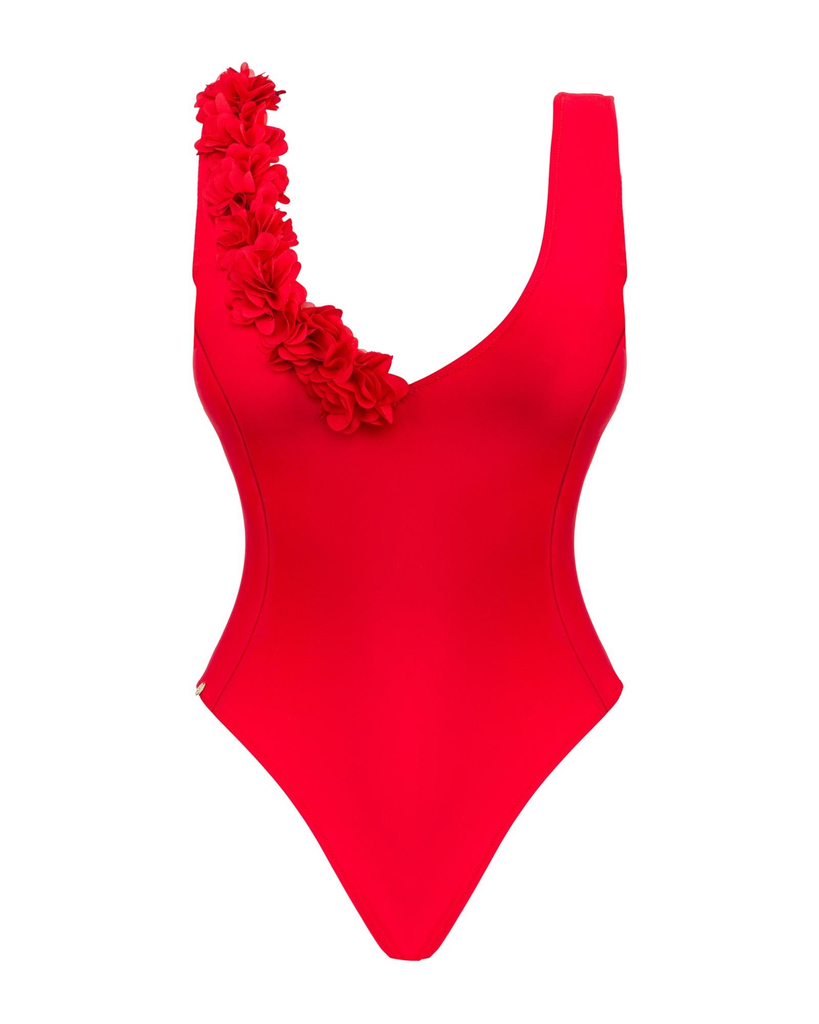 Bardzo kobiecy, czerwony kostium kąpielowy. Kwiatowy element, dodający dziewczęcego uroku, w połączeniu z głęboko wyciętym dekoltem to zaskakujące i jednocześnie ciekawe zestawienie. Ozdoba sięga od biustu, aż po linię pośladków, a wysoko wycięta linia bioder idealnie wysmukla sylwetkę. Kostium Cubalove w zestawieniu ze spodniami lub zwiewną spódnicą będzie także wyjątkowym elementem w letniej, a nawet wieczorowej stylizacji. -czerwony, jednoczęściowy kostium kąpielowy z uwodzicielskim dekoltem-unikalna, odpinana ozdoba w kształcie kwiatów-głębokie wycięcie na plecach z odpinanym, regulowanym paskiem-wysoko wycięta linia bioder w stylu lat 90-tych-elastyczny i przyjemny materiał (82% poliamid, 18% elastan; podszewka: 95% poliester, 5% elastan)