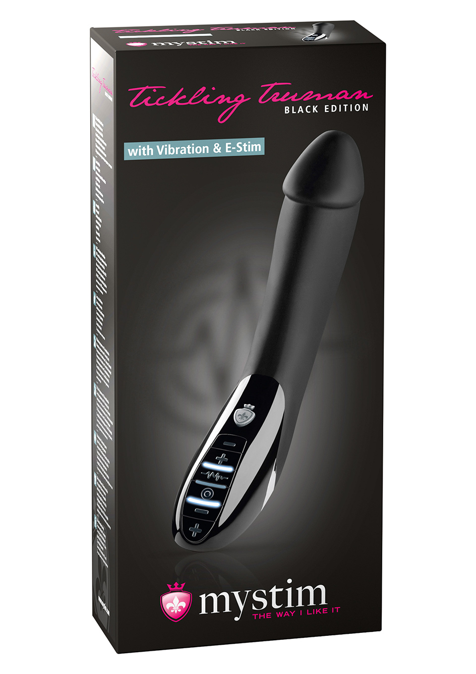 Our E-Stim Vibes are toys that have you enjoy both vibration and electrical stimulation at once and they don’t even need a nerve stimulator kit for it.Our Truman hast not one but two vibration motors: one in the tip and one in the shaft. In 8 different programmes and 5 different intensity levels, these two work together to provoke some ecstasy in a nicely varied array of ways.Each of the E-Stim Vibe’s 5 electrical stimulation programmes is set on bringing you a tingly new sensation, and you can choose between 10 different levels of intensity. Truman’s conductive surfaces run the length of his body to make the stimulation as smooth and broad as possible. Our Tickling Truman also has a training programme that strengthens the muscles in your pelvic floor which verifiably enhances the ladies’ ability to reach an orgasm. The three different functions are easily controlled via the buttons in the handle. You can choose whether you want e-stim and vibration together or only one of them. He comes with a built-in long-life lithium-ion battery that is rechargeable via a Mystim magnet charge USB cable which is, of course, included in the delivery. Even if you have both e-stim and vibrations set to their highest levels, a fully charged Truman runs for at least 3 hours before his efficacy starts to fade.