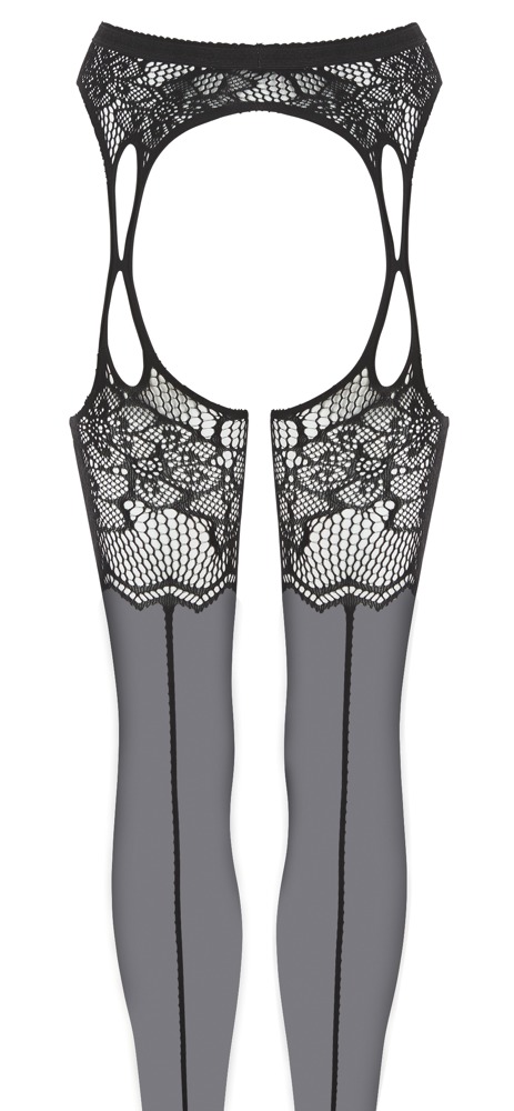 Sexy – right down to the last detail! Suspender tights in a fancy suspender belt look. Made out of delicate net material with a sewn-on floral pattern. These eye-catching suspender tights are as comfortable as normal tights. A real must-have for sensual moments of pleasure. 90% polyamide, 10% spandex.