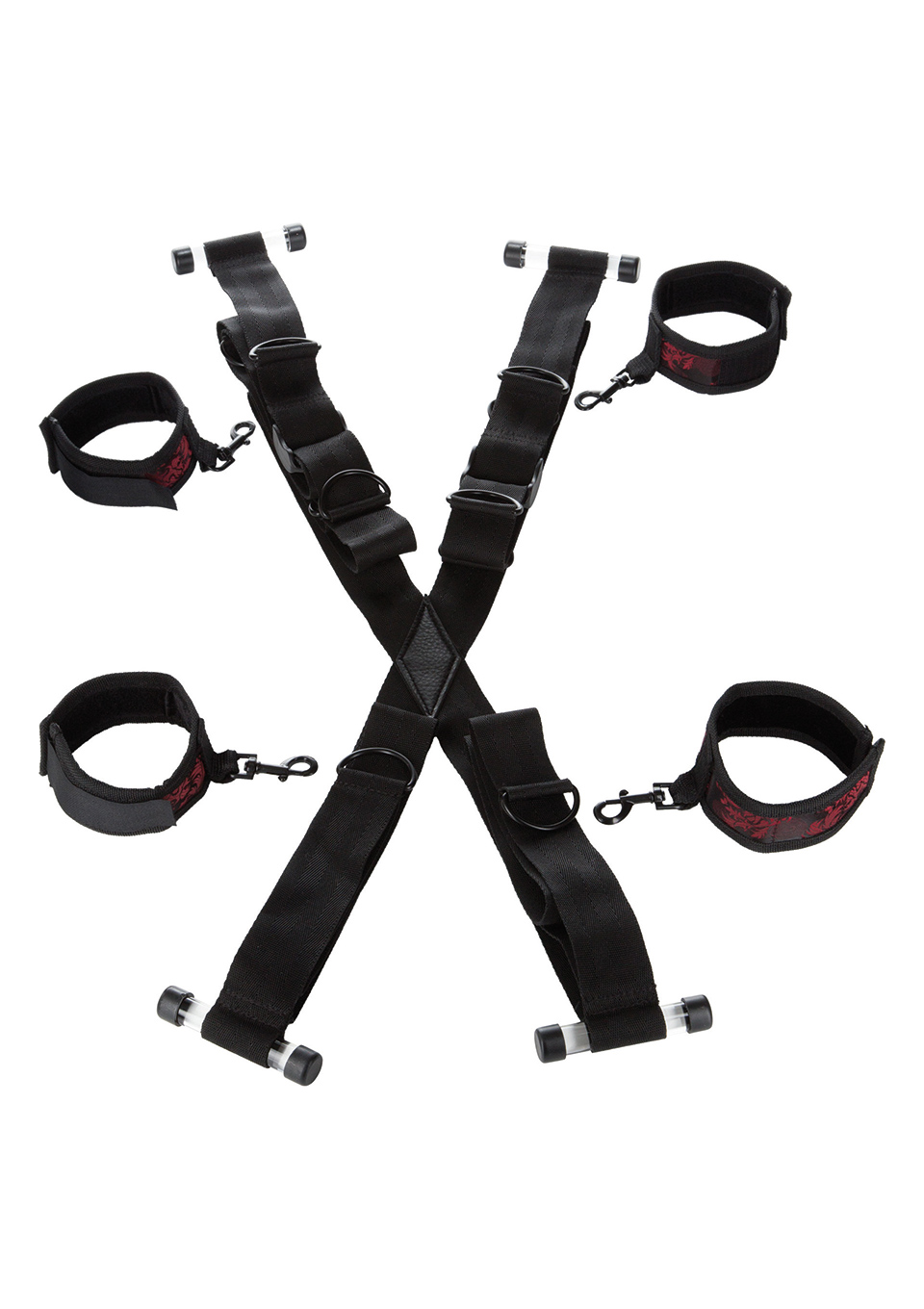 Scandal over the door cross – ekskluzywny system kajdanek z możliwością przypięcia do drzwi. Miękko wykończone kajdanki zapinane na rzepy ograniczą ruchliwość strony uległej. Krzyżujące się pasy zakończone na czterech końcach blokadami umożliwiającą unieruchomienie przy drzwiach pozwalając na pełną kontrolę pozycji. Dodatkowo górna część posiada dwie wysokości przypięcia rąk do wyboru. Wszystkie cztery bransolety zakończone są karabińczykami, co pozwala używać ich także z innymi akcesoriami z serii Scandal. Przykładowo założone na nogi umożliwiają założenie rozpórki.