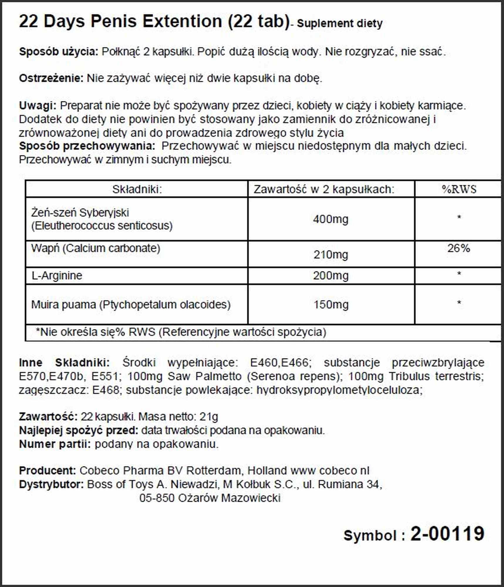 Zawiera rwniez aktywne skladniki zwiekszajace poped, moc, potencje I libido.