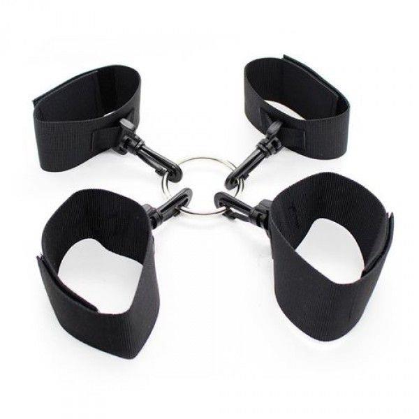Zestaw wiązań z nylonowymi kajdankami na nadgarstkii i kajdankami na kostki połączonymi ze sobą, aby związać partnera za plecami!